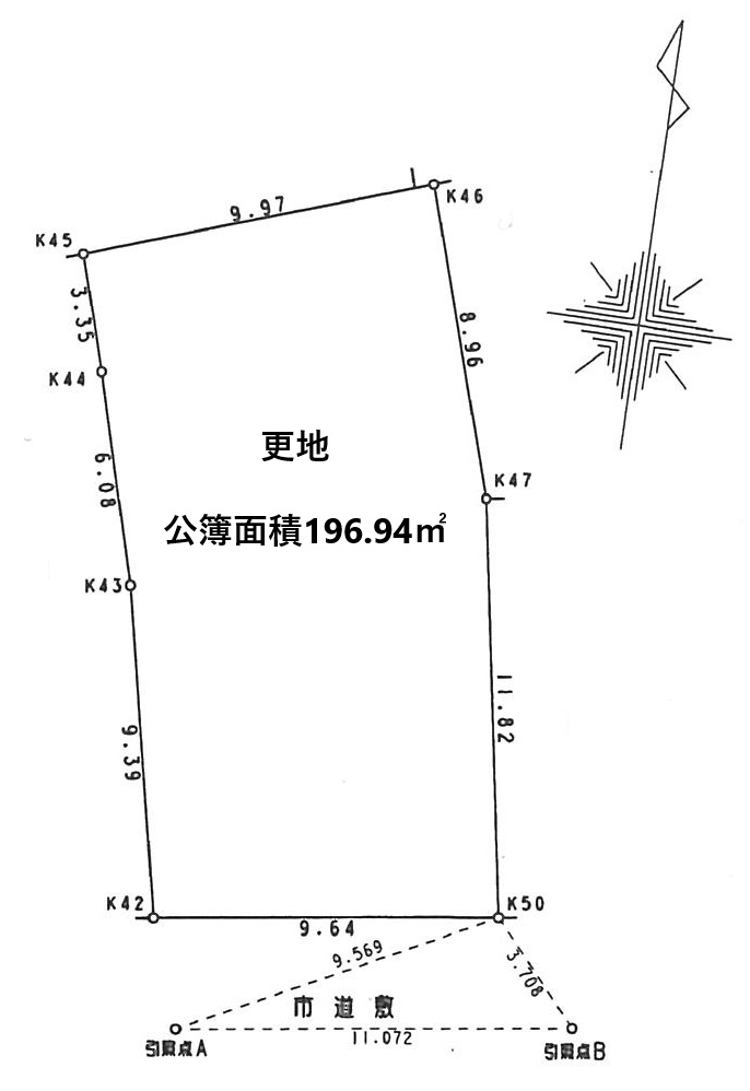 | 土地面積 | 公簿 196.94㎡(59.57坪) | セットバック | 要 4.32㎡(1.31坪) |